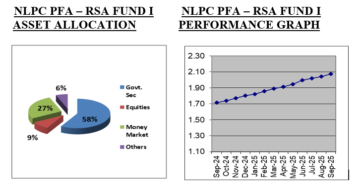 The Asset Allocation and performance of our NLPC PFA – RSA Fund I as at 30th September, 2025 stood as follows: