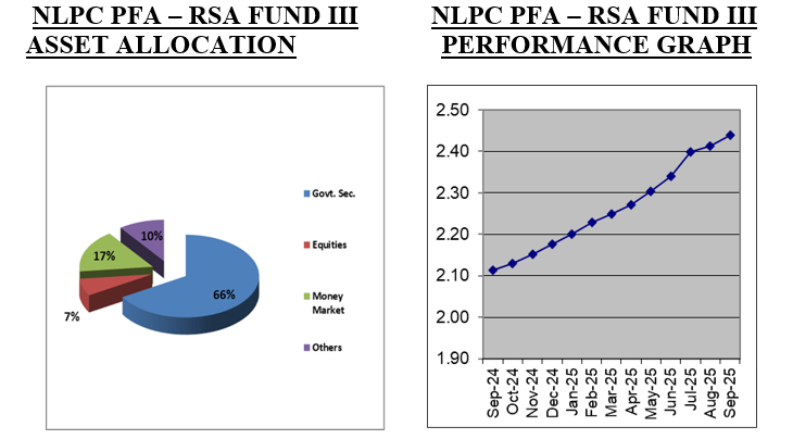The Asset Allocation and performance of our NLPC PFA – RSA Fund III as at 30th September, 2025 stood as follows:
