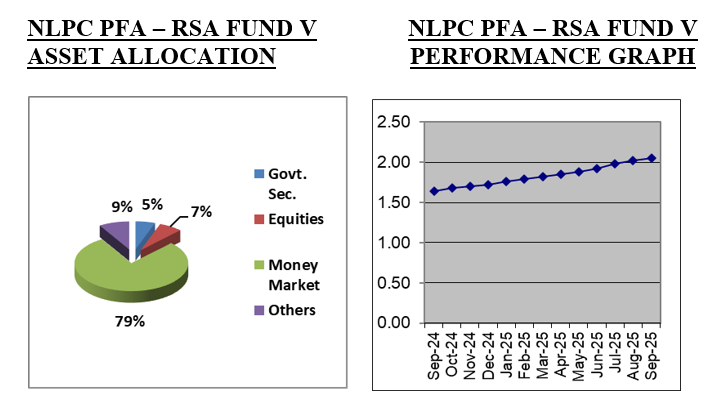 The Asset Allocation and performance of our NLPC PFA – RSA Fund V as at 30th September, 2025 stood as follows: