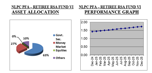 The Asset Allocation and performance of our NLPC PFA – RSA Fund VI - Retiree as at 31st December, 2025 stood as follows:
